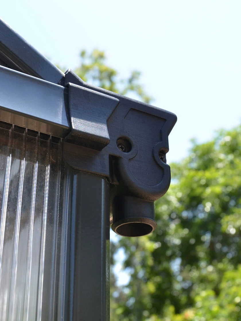 • 10 mm (0.4″)-thick hail-resistant, high impact twin-wall polycarbonate panels, which are 100% UV-protected, providing extra protection and ideal insulation